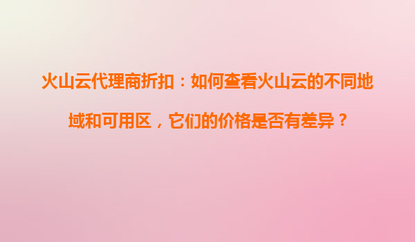 2025-10-29火山云代理商折扣:如何查看火山云的不同地域和可用區(qū)及價(jià)格差異 火山云的地域與可用區(qū)概述 火山云作為字節(jié)跳動(dòng)旗下的云計(jì)算服務(wù)品牌,提供了全球范圍內(nèi)的多地...