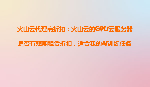 2025-10-29火山云GPU云服務(wù)器短期租賃折扣與AI訓(xùn)練任務(wù)的解決方案 一、火山云GPU云服務(wù)器的核心優(yōu)勢(shì) 隨著AI技術(shù)的快速發(fā)展,企業(yè)對(duì)高性能計(jì)算資源的需求日益增長(zhǎng)。火山云作為行業(yè)領(lǐng)先的云服務(wù)提供商,其GPU...