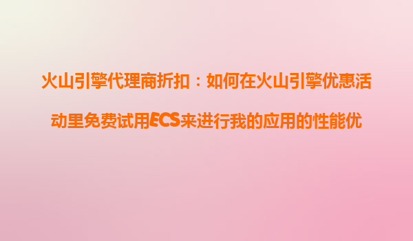 2025-10-27火山引擎代理商折扣:如何在火山引擎優(yōu)惠活動(dòng)里免費(fèi)試用ECS進(jìn)行應(yīng)用性能優(yōu)化測(cè)試 一、火山引擎免費(fèi)試用ECS的價(jià)值 對(duì)于開發(fā)者或企業(yè)而言,應(yīng)用性能優(yōu)化測(cè)試需要穩(wěn)定的計(jì)算資源支持,而火山引擎提供的免費(fèi)ECS(彈...