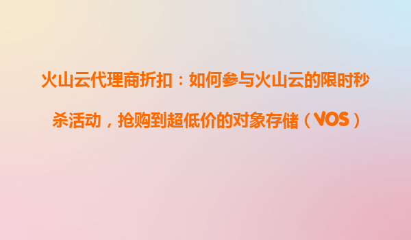 2025-10-27如何參與火山云限時(shí)秒殺活動(dòng)?火山云代理商帶你搶購(gòu)超低價(jià)VOS對(duì)象存儲(chǔ) 一、火山云限時(shí)秒殺活動(dòng)簡(jiǎn)介 火山云作為字節(jié)跳動(dòng)旗下的云計(jì)算品牌,定期推出限時(shí)秒殺活動(dòng),為用戶提供超低價(jià)的產(chǎn)品體驗(yàn)機(jī)會(huì)。其中對(duì)象...