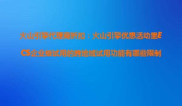 2025-10-26火山引擎代理商折扣:火山引擎優(yōu)惠活動中ECS企業(yè)版試用的跨地域試用功能限制解析 一、火山引擎ECS企業(yè)版跨地域試用功能概述 火山引擎作為字節(jié)跳動旗下的云計算服務(wù)平臺,其ECS企業(yè)版(彈性計算服務(wù))提供了跨地...