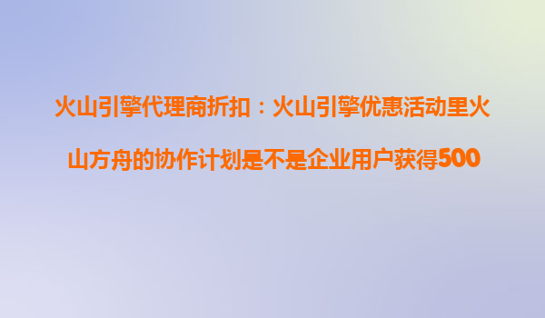 2025-10-26火山引擎代理商折扣:火山方舟協(xié)作計劃的價值解析 在火山引擎的優(yōu)惠活動中,火山方舟協(xié)作計劃為企業(yè)用戶提供了極具吸引力的資源支持。其中,500萬Tokens的贈送成為許多企業(yè)關(guān)注的焦點。那么,這是否是企業(yè)用戶獲...