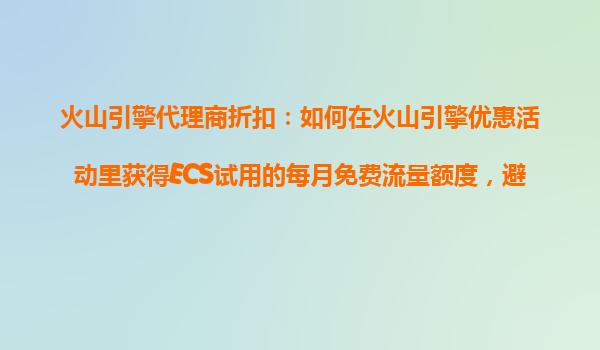4008-020-360 火山引擎代理商折扣:如何在火山引擎優(yōu)惠活動里獲得ECS試用的每月免費流量額度,避免額外流量費用? 一、火山引擎的優(yōu)勢與ECS服務(wù)簡介 火山引擎作為字節(jié)跳動旗下的云計算品牌,依托全球數(shù)據(jù)中心和...