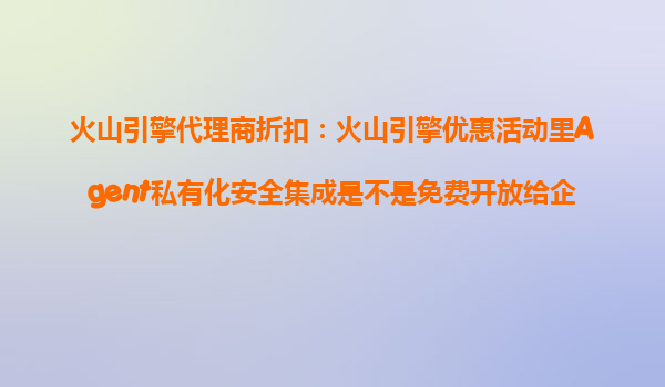 2025-10-26火山引擎代理商折扣政策解析:Agent私有化安全集成是否免費開放? 一、火山引擎優(yōu)惠活動核心解讀 近期火山引擎推出的企業(yè)優(yōu)惠活動中,"Agent私有化安全集成"功...