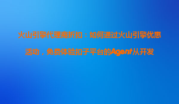 2025-10-27火山引擎代理商折扣:如何通過火山引擎優(yōu)惠活動,免費體驗扣子平臺的Agent從開發(fā)到部署的全流程 一、火山引擎優(yōu)惠活動簡介 火山引擎作為字節(jié)跳動旗下的云服務(wù)平...