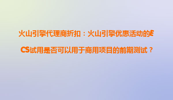 2025-10-26火山引擎代理商折扣:火山引擎ECS試用能否用于商用項目前期測試? 一、火山引擎ECS試用活動的核心價值 火山引擎近期推出的ECS(彈性計算服務(wù))試用活動,為企業(yè)...