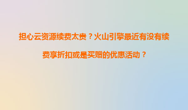 2025-11-05火山引擎云資源續(xù)費(fèi)優(yōu)惠來襲,高性價比助力企業(yè)無憂上云 火山引擎續(xù)費(fèi)福利大盤點,輕松降低企業(yè)成本 近期,火山引擎針對企業(yè)用戶特別推出"云資源續(xù)費(fèi)尊享計劃",包含多重優(yōu)惠:年度續(xù)費(fèi)用戶可享最高15...