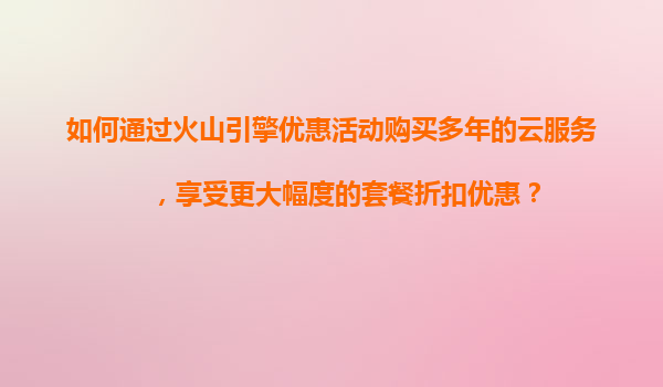 2025-11-06如何通過火山引擎優(yōu)惠活動購買多年的云服務(wù),享受更大幅度的套餐折扣優(yōu)惠? 一、火山引擎云服務(wù)的核心優(yōu)勢 火山引擎作為字節(jié)跳動旗下的云服務(wù)平臺,憑借技術(shù)創(chuàng)新和資源優(yōu)勢,為企業(yè)提供高性價比的云計算解決方案: ...