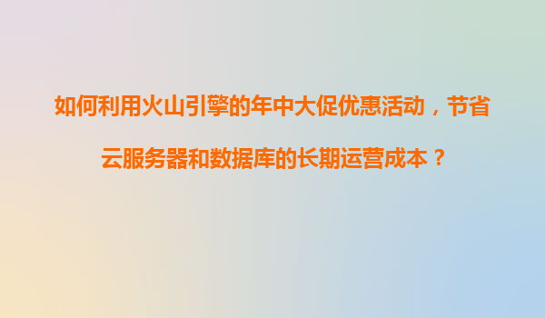 2025-11-05利用火山引擎年中大促優(yōu)惠,優(yōu)化云服務(wù)器與數(shù)據(jù)庫長期運(yùn)營成本 年中大促活動:降本增效的最佳時機(jī) 火山引擎的年中大促活動為企業(yè)提供了極具吸引力的優(yōu)惠政策,包括云服務(wù)器、數(shù)據(jù)庫等核心產(chǎn)品的折扣套...