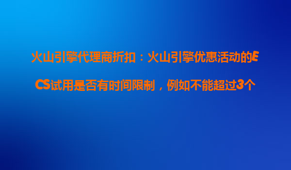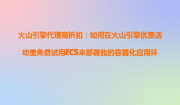 2025-10-26火山引擎代理商折扣:火山引擎優(yōu)惠活動的ECS試用全解析 火山引擎ECS試用政策詳解 火山引擎作為字節(jié)跳動旗下的云計算服務(wù)品牌,近年來憑借其高性價比和穩(wěn)定性能迅速贏得市場...