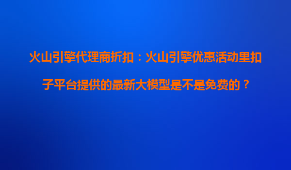 2025-10-26火山引擎代理商折扣:火山引擎優(yōu)惠活動中扣子平臺提供的最新大模型是否免費? 火山引擎代理商折扣與扣子平臺大模型服務(wù) 火山引擎作為字節(jié)跳動旗下的云計算服務(wù)...