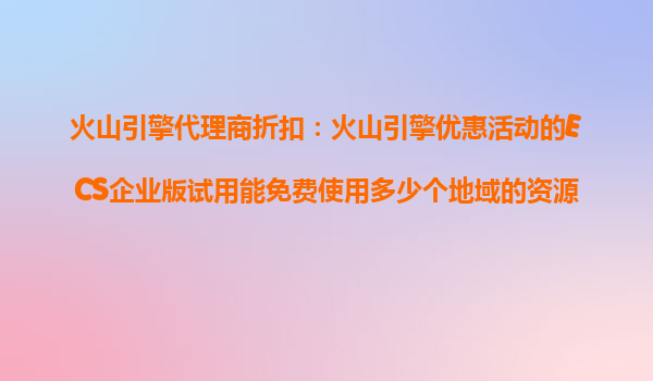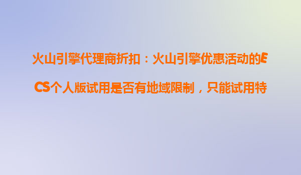 4008-020-360 火山引擎代理商折扣:解析ECS個人版試用地域限制與火山云生態(tài)優(yōu)勢 一、火山引擎ECS個人版試用地域限制解析 許多用戶在選擇火山引擎云服務(wù)器ECS個人版試用時,常關(guān)注地域是否受限。根據(jù)官方政策,試用賬號通常...