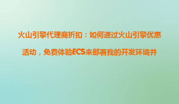 2025-10-26火山引擎代理商折扣:如何通過火山引擎優(yōu)惠活動,免費體驗ECS部署開發(fā)環(huán)境并連接數(shù)據(jù)庫? 一、什么是火山引擎? 火山引擎是字節(jié)跳動旗下的云計算服務(wù)平臺,提供包括彈性計算(ECS)、云...