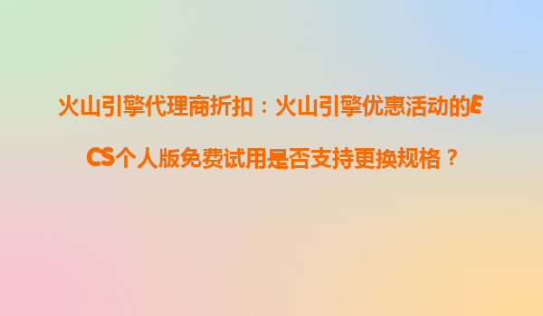 2025-10-26火山引擎代理商折扣:火山引擎優(yōu)惠活動的ECS個人版免費試用是否支持更換規(guī)格? 一、火山引擎ECS個人版免費試用的規(guī)格更換政策 火山引擎提供的ECS(彈性計算服務(wù))個人版免費試用活動是許多用戶體驗云...
