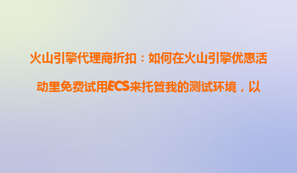 2025-10-24火山引擎代理商折扣:如何免費試用ECS托管測試環(huán)境以節(jié)省初期投入? 一、火山引擎ECS免費試用的價值 在項目開發(fā)初期,測試環(huán)境的搭建往往需要投入大量硬件資源和時間成本。火山引...