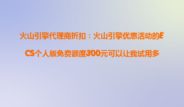 2025-10-25火山引擎云服務器ECS個人版免費額度:300元能試用多久? 火山云ECS免費額度詳解 火山引擎為個人用戶提供了300元的新手體驗金,可用于ECS云服務器的試用。具體使用時長取決于您選擇的配置:若選用1核2G...