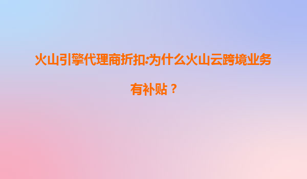 2025-07-09火山引擎代理商折扣:為什么火山云跨境業(yè)務(wù)有補(bǔ)貼? 一、火山引擎代理商折扣的推出背景 火山引擎是字節(jié)跳動旗下的云計算品牌,近年來憑借強(qiáng)大的技術(shù)實(shí)力和資源整合能力迅速崛起。為了進(jìn)一步擴(kuò)大市場...