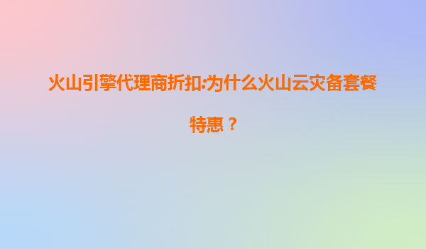 2025-07-09火山引擎代理商折扣:為什么火山云災(zāi)備套餐特惠? 近年來,數(shù)字化轉(zhuǎn)型加速推進(jìn),企業(yè)對數(shù)據(jù)安全和業(yè)務(wù)連續(xù)性的需求越來越高。云計算服務(wù)商紛紛推出各類災(zāi)備解決方案,其中火山云的災(zāi)備套餐以“特惠”著稱。那么,為...