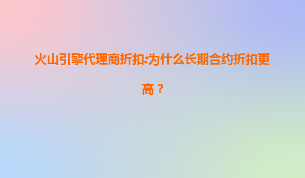 2025-07-09火山引擎代理商折扣:為什么長期合約折扣更高? 一、長期合約的價(jià)值邏輯 在云計(jì)算領(lǐng)域,長期合約(如1年、3年等)往往能享受更高的折扣優(yōu)惠,這背后的商業(yè)邏輯其實(shí)非常簡單: 穩(wěn)定性...
