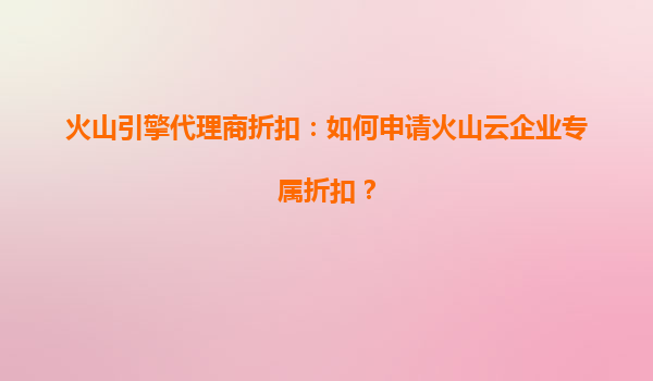 4008-020-360 火山引擎代理商折扣:哪些支付方式額外減免? 一、火山引擎與代理商合作的核心優(yōu)勢 火山引擎作為字節(jié)跳動旗下的企業(yè)級技術(shù)服務(wù)平臺,提供云計算、大數(shù)據(jù)、AI等一站式解決方案。其代理商體系通過本地化服務(wù)...