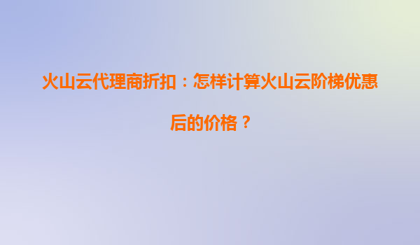 2025-07-05火山云代理商折扣:階梯優(yōu)惠價(jià)格計(jì)算與優(yōu)勢解析 一、火山云階梯優(yōu)惠規(guī)則解析 火山云的階梯優(yōu)惠是一種“用量越大,單價(jià)越低”的定價(jià)策略,通常分為以下幾個步驟: ...