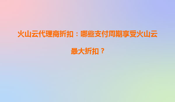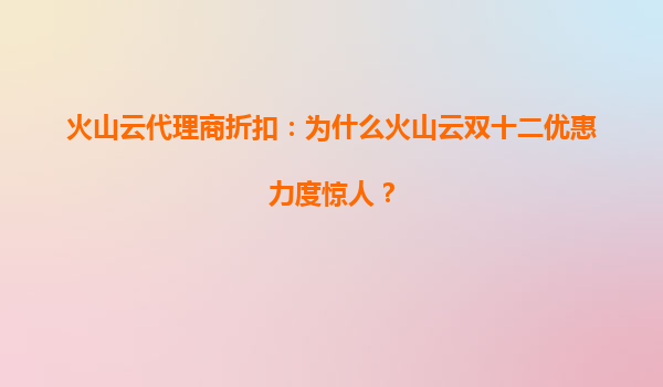 2025-07-05火山云代理商折扣:如何利用火山云產(chǎn)品打包優(yōu)惠節(jié)省成本? 一、火山云的核心優(yōu)勢與代理商價(jià)值 火山云作為字節(jié)跳動旗下的云計(jì)算服務(wù)品牌,憑借高性能計(jì)算資源、全球化基礎(chǔ)設(shè)施和AI技術(shù)融合能力,為企業(yè)提供...