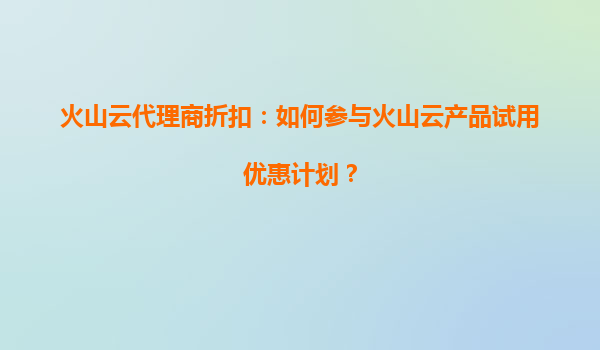 2025-07-05火山云代理商折扣:如何參與火山云產(chǎn)品試用優(yōu)惠計(jì)劃? 一、火山云的核心優(yōu)勢解析 火山云作為字節(jié)跳動旗下的云計(jì)算服務(wù)品牌,憑借以下核心優(yōu)勢成為企業(yè)數(shù)字化轉(zhuǎn)型的理想選擇: 全球基礎(chǔ)設(shè)施布局:覆蓋亞...