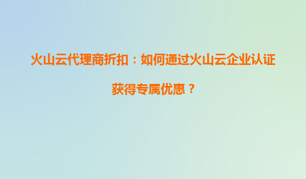 2025-07-02火山云代理商折扣:如何通過(guò)火山云企業(yè)認(rèn)證獲得專屬優(yōu)惠? 一、火山云的核心優(yōu)勢(shì) 在當(dāng)今快速發(fā)展的云計(jì)算市場(chǎng)中,火山云憑借其獨(dú)特的技術(shù)和服務(wù)優(yōu)勢(shì),成為越來(lái)越多企業(yè)的首選。以下...