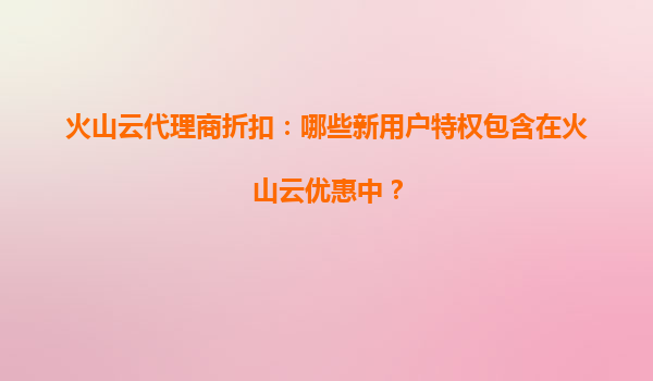 2025-07-02火山云代理商折扣:新用戶特權(quán)與核心優(yōu)勢(shì)解析 一、火山云新用戶專屬優(yōu)惠特權(quán) 火山云為首次注冊(cè)的用戶提供了一系列極具吸引力的優(yōu)惠特權(quán),通過(guò)代理商渠道還可疊加額外折扣。主要包含以下核心權(quán)益: ...