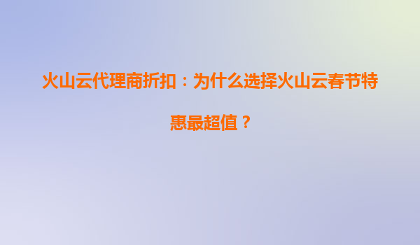 2025-07-02火山云代理商折扣:為什么選擇火山云春節(jié)特惠最超值? 引言 隨著春節(jié)的臨近,各大云服務(wù)商紛紛推出節(jié)日特惠活動(dòng)。作為國(guó)內(nèi)領(lǐng)先的云計(jì)算服務(wù)提供商,火山云(VolcanoEngine)也推出...
