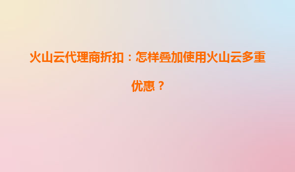 2025-07-02火山云代理商折扣:如何巧妙疊加多重優(yōu)惠? 一、火山云與代理商的協(xié)同優(yōu)勢(shì) 火山云作為領(lǐng)先的云計(jì)算服務(wù)提供商,以其高性能、高可靠性和靈活的計(jì)費(fèi)模式吸引了大量企業(yè)用戶。而火山云...