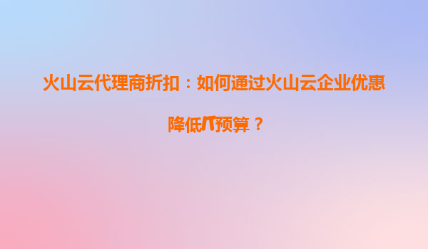 2025-07-02火山云代理商折扣:如何通過(guò)火山云企業(yè)優(yōu)惠降低IT預(yù)算? 一、為什么選擇火山云? 隨著數(shù)字化進(jìn)程加速,企業(yè)IT成本壓力日益增大。火山云作為領(lǐng)先的云計(jì)算服務(wù)提供商,通過(guò)彈性資源分配、...