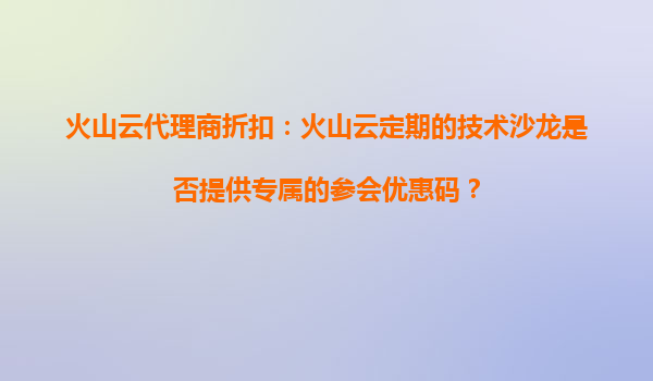 2025-10-22火山云代理商折扣:火山云技術(shù)沙龍專屬優(yōu)惠碼的參會價值解析 一、火山云代理商的核心優(yōu)勢與服務(wù)聯(lián)動 作為國內(nèi)領(lǐng)先的云計算服務(wù)商,火山云通過代理商體系為企業(yè)...