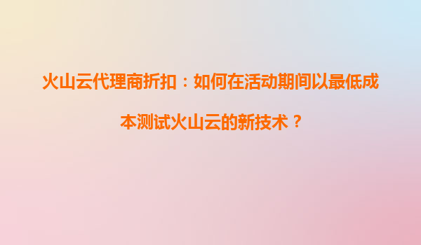 2025-10-22火山云代理商折扣:如何以最低成本測試新技術(shù) 火山云的技術(shù)優(yōu)勢與市場定位 作為字節(jié)跳動旗下的云計算品牌,火山云憑借高性能計算資源、全球化基礎(chǔ)設(shè)施和AI原生技術(shù)棧,成為企業(yè)數(shù)字化轉(zhuǎn)型的重要選擇。其獨特的視頻...