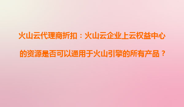 2025-10-21火山云代理商折扣:火山云企業(yè)上云權(quán)益中心的資源通用于火山引擎的所有產(chǎn)品嗎? 一、火山云企業(yè)上云權(quán)益中心的核心資源 火山云作為字節(jié)跳動旗下企業(yè)級云計算服務(wù)品牌,其“企業(yè)上云權(quán)益中心”旨在為企...