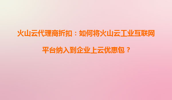 2025-10-21火山云代理商折扣:如何將火山云工業(yè)互聯(lián)網(wǎng)平臺納入到企業(yè)上云優(yōu)惠包 引言 隨著工業(yè)4.0時代的到來,越來越多的企業(yè)開始借助云計算平臺實現(xiàn)數(shù)字化轉(zhuǎn)型。火山云作為國內(nèi)領(lǐng)先的云計算服務提供商,其工業(yè)互聯(lián)...