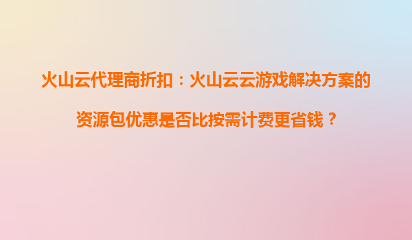 2025-10-21火山云代理商折扣:火山云云游戲解決方案的資源包優(yōu)惠是否比按需計費更省錢? 引言 隨著云計算技術(shù)的快速發(fā)展,云游戲作為一種新興的游戲形式,逐漸成為行業(yè)的熱點。火山云作為國內(nèi)領(lǐng)先...