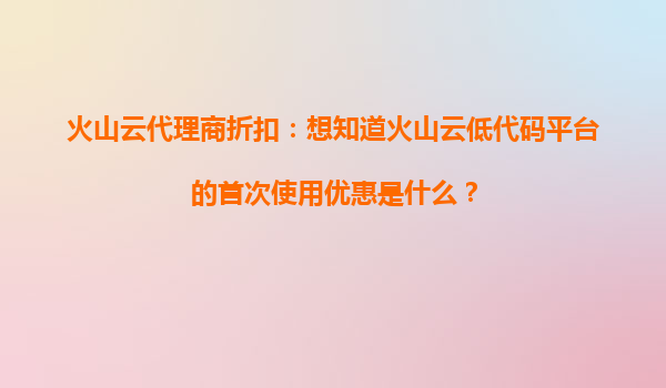 2025-10-21火山云低代碼平臺首次使用優(yōu)惠及代理商優(yōu)勢解析 一、火山云低代碼平臺核心價值 火山云低代碼平臺是字節(jié)跳動旗下的企業(yè)級數(shù)字化解決方案,通過可視化拖拽和模塊化組件,幫助客戶快速搭建ERP、CRM、OA等系...