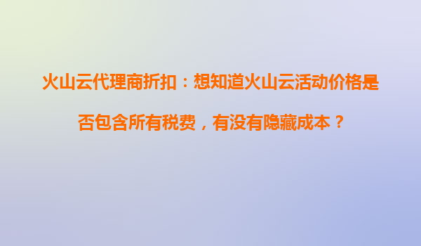 4008-020-360 火山云代理商折扣:活動價格是否包含所有稅費及隱藏成本分析 一、火山云代理商折扣的吸引力 火山云作為國內(nèi)領(lǐng)先的云計算服務商,憑借其穩(wěn)定的產(chǎn)品性能和靈活的資源調(diào)配能力,吸引了大量企業(yè)用戶。其定期推...