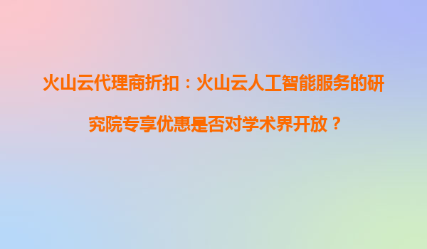 2025-10-21火山云人工智能服務:助力學術(shù)研究的智能伙伴 火山云作為字節(jié)跳動旗下的云計算品牌,憑借其強大的技術(shù)實力和豐富的資源積累,為各行業(yè)提供優(yōu)質(zhì)的云服務解決方案。其中,火山云人工智能服務尤其受到學術(shù)界研究人員的...