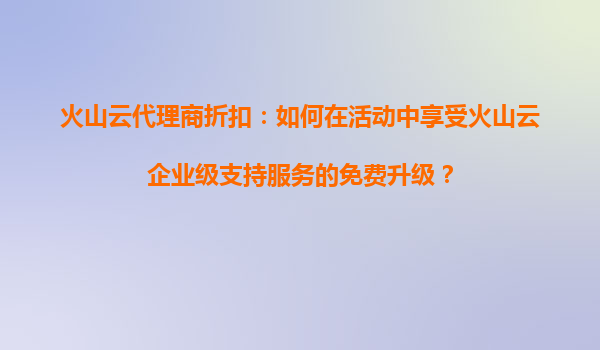 2025-10-20火山云代理商折扣:如何在活動中享受火山云企業(yè)級支持服務的免費升級? 一、火山云的核心優(yōu)勢 火山云作為領(lǐng)先的云計算服務提供商,憑借以下優(yōu)勢成為企業(yè)數(shù)字化轉(zhuǎn)型的首選: 高性能計算資源-全球部...