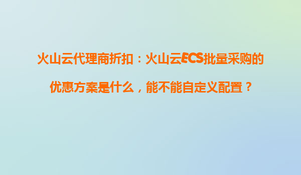 2025-10-17火山云代理商折扣:火山云ECS批量采購的優(yōu)惠方案與自定義配置解析 一、火山云ECS批量采購的優(yōu)惠方案 火山云作為國內(nèi)領(lǐng)先的云計算服務(wù)商,為企業(yè)用戶提供了靈活的ECS(彈性計算服務(wù))批量采購優(yōu)惠...