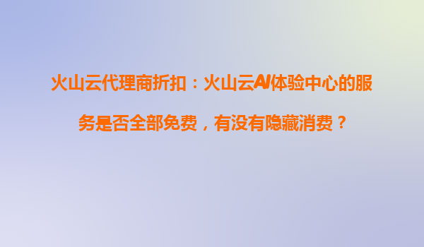 2025-10-18火山云代理商折扣:火山云AI體驗中心的服務(wù)是否全部免費,有沒有隱藏消費? 火山云AI體驗中心的服務(wù)模式 火山云是字節(jié)跳動旗下的云計算服務(wù)品牌,提供包括存儲、計算、AI等在內(nèi)的多種云服務(wù)。其AI...