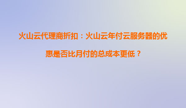 2025-10-17火山云代理商折扣政策解析 火山云作為國內(nèi)領(lǐng)先的云計算服務(wù)提供商,針對不同用戶需求推出了靈活的付費模式。通過其代理商體系,用戶可享受更優(yōu)惠的價格政策。其中,年付模式往往能獲得比月付更顯著的成本優(yōu)勢——通...