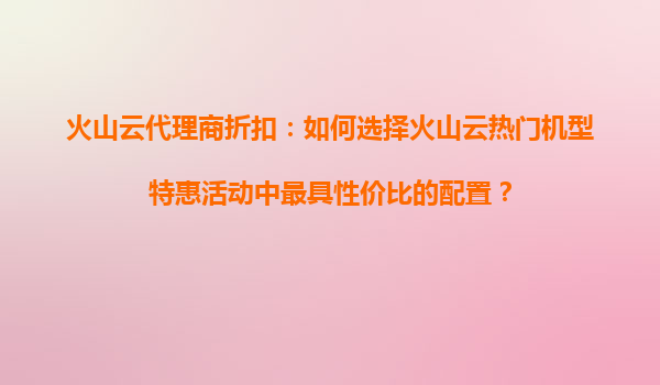 2025-10-17火山云代理商折扣:如何選擇最具性價(jià)比的配置? 在云計(jì)算市場(chǎng)競(jìng)爭(zhēng)日益激烈的今天,火山云憑借其高性能、穩(wěn)定可靠的服務(wù)和極具競(jìng)爭(zhēng)力的價(jià)格贏得了眾多企業(yè)的青睞。特別是通過(guò)火山云代理商折扣,用戶可以享受到更優(yōu)...