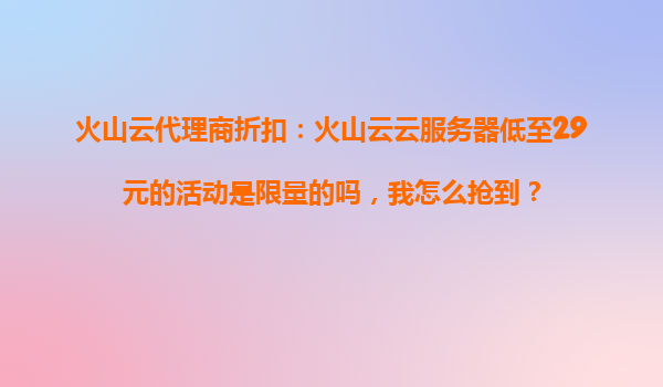 2025-10-17火山云代理商限時(shí)折扣:29元云服務(wù)器搶購(gòu)攻略與火山云優(yōu)勢(shì)解析 一、火山云促銷活動(dòng)是否限量? 火山云代理商推出的29元云服務(wù)器限時(shí)折扣通常屬于限量促銷活動(dòng),...