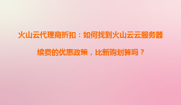 2025-10-17火山云代理商折扣政策解讀 成為火山云認(rèn)證代理商后,用戶可以享受平臺(tái)提供的多項(xiàng)優(yōu)惠政策。關(guān)于首次認(rèn)證后是否立即獲得大額優(yōu)惠金,需要明確的是,代理商權(quán)益通常采用階梯式釋放機(jī)制。完成基礎(chǔ)資質(zhì)認(rèn)證后,用戶可獲...