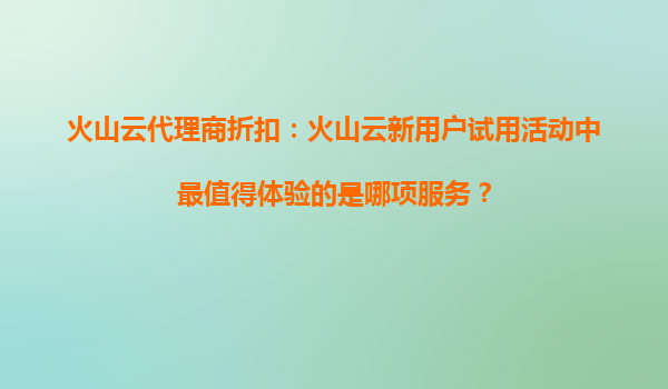 2025-10-16火山云代理商折扣:新用戶試用活動(dòng)中最值得體驗(yàn)的服務(wù)解析 一、引言 隨著云計(jì)算技術(shù)的快速發(fā)展,越來(lái)越多的企業(yè)開始將業(yè)務(wù)遷移至云端。火山云作為國(guó)內(nèi)領(lǐng)先的云計(jì)算服務(wù)提供商,憑借其強(qiáng)...