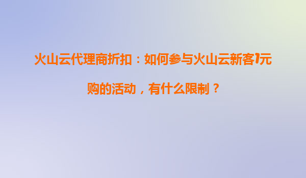 2025-10-17火山云代理商折扣:如何參與火山云新客1元購(gòu)的活動(dòng),有什么限制? 一、火山云新客1元購(gòu)活動(dòng)簡(jiǎn)介 火山云作為字節(jié)跳動(dòng)旗下的云計(jì)算服務(wù)品牌,近年來(lái)憑借高性價(jià)比和穩(wěn)定的服務(wù)吸引了大量用戶。為吸引...