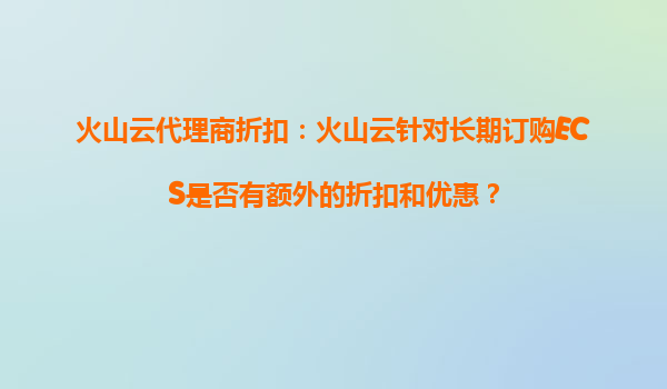 2025-10-17火山云長(zhǎng)期訂購(gòu)ECS:更多折扣與優(yōu)惠助力企業(yè)降本增效 火山云ECS長(zhǎng)期訂購(gòu)的階梯式折扣政策 作為國(guó)內(nèi)領(lǐng)先的云計(jì)算服務(wù)商,火山云針對(duì)企業(yè)長(zhǎng)期使用ECS的需求,推出了階梯式折扣優(yōu)惠。用戶可根據(jù)業(yè)務(wù)...